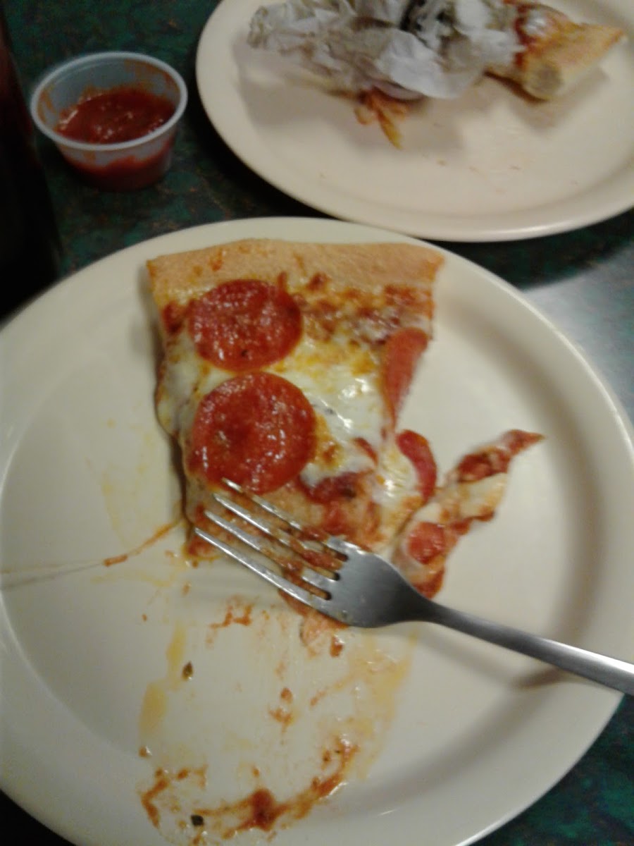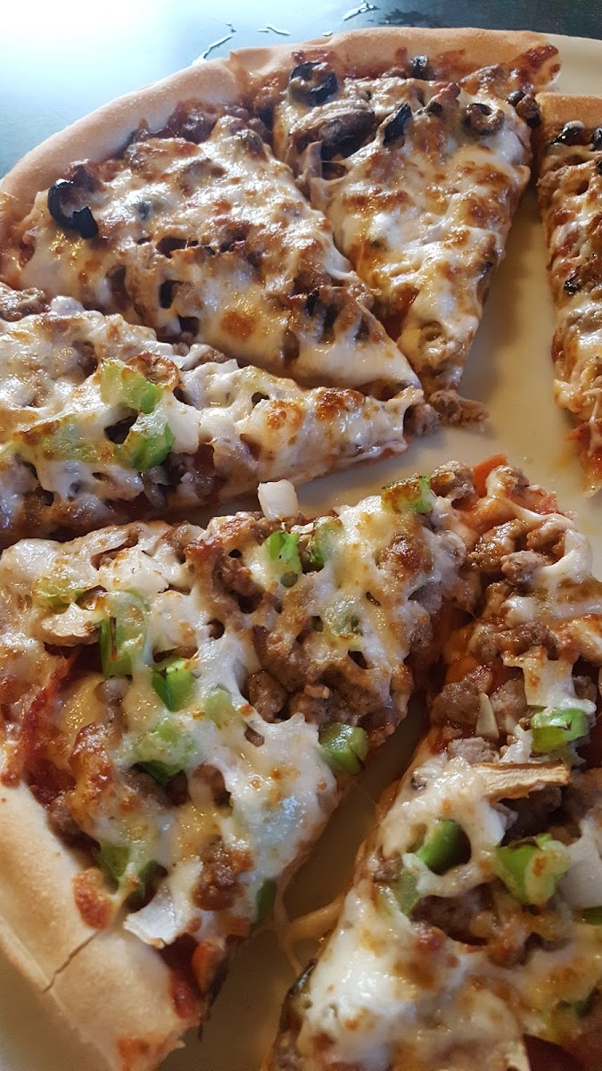 I really like godfathers pizza. This visit the pizza had more cheese than I like but it was fine. This location is usually pretty dirty and staff seems confused. I root for them! Wish there were more godfathers in Minnesota!!